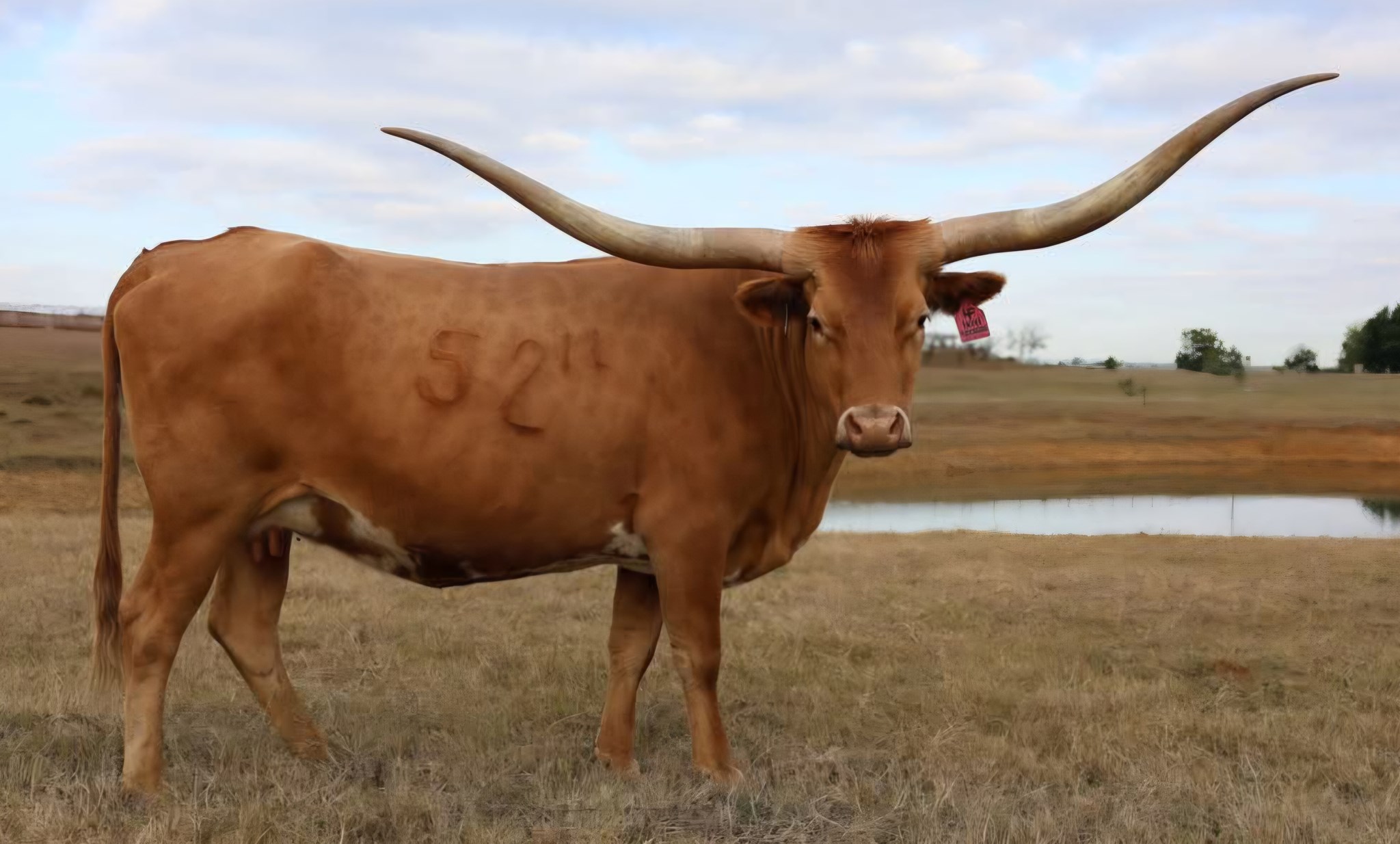 Light Brown w' White Belly 5-year-old cow with rolling horns on pace to be 90"+ as a young 6-year-old that loves to eat cubes from your hands