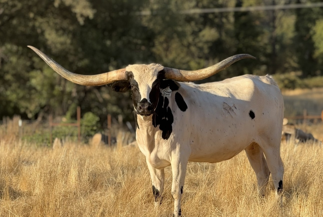 Daughter of the longest horn bull in the breed, COWBOY TUFF CHEX, and the 90"+ true black SADDLE JEWEL the 2021 ULTIMATE COW