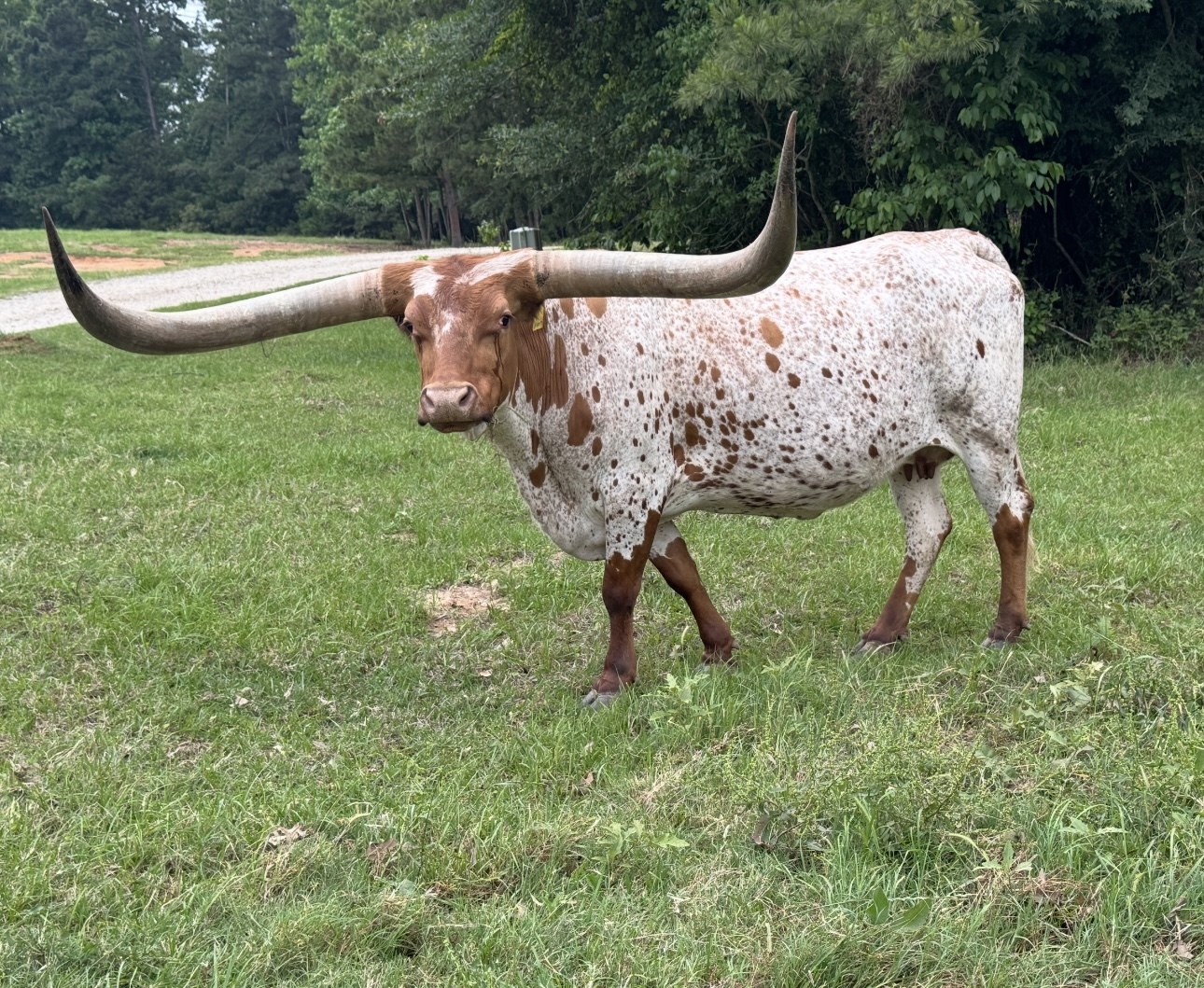 Wow, this is one outstanding cow. Look at her horn, her color, her size. She is the real thing! This cow has produced for us consistently every year. What she does not have in ttt she makes up for in total horn. SNP markers on file: Genotype 45054984